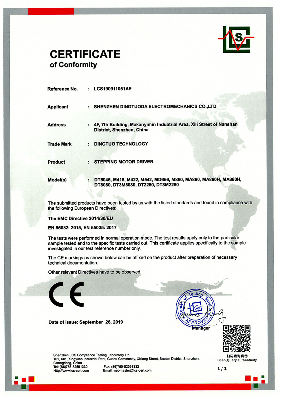 首頁->產(chǎn)品認證->步進驅(qū)動器CE認證證書